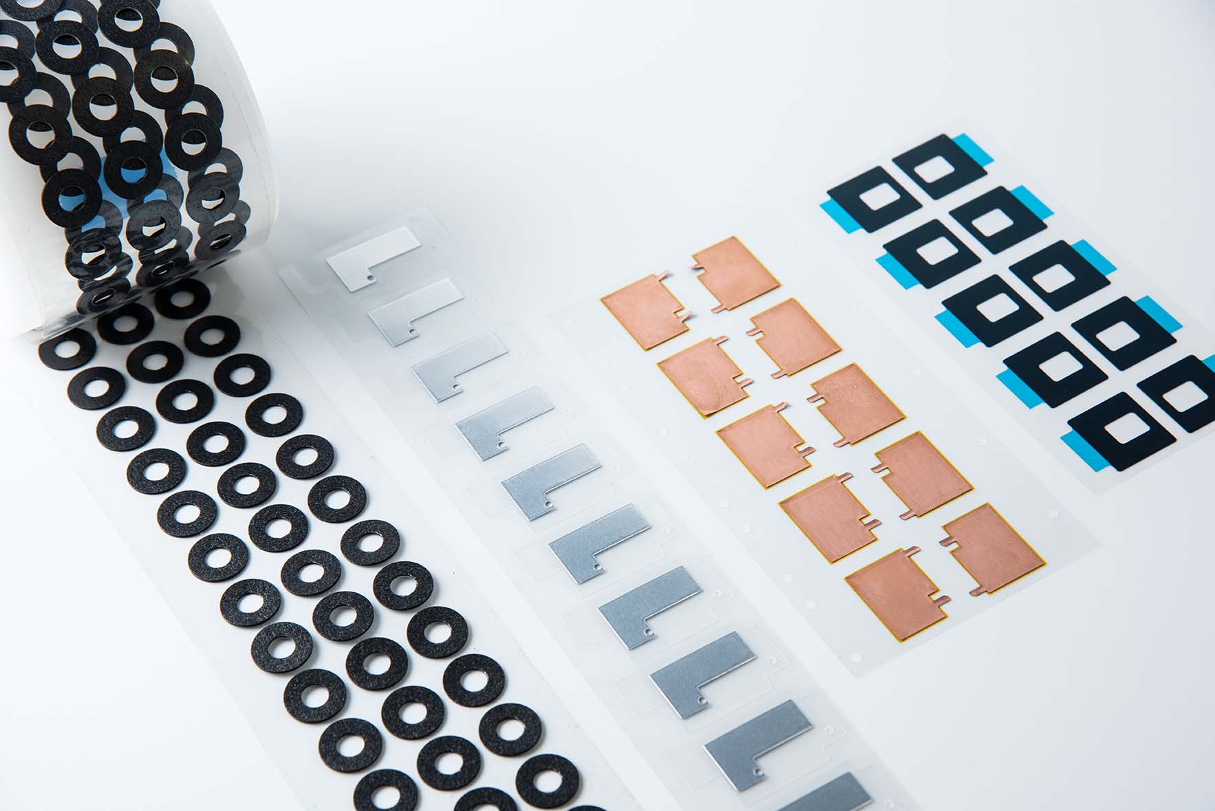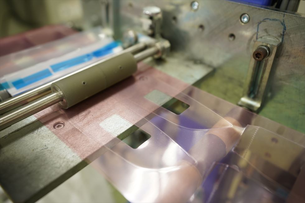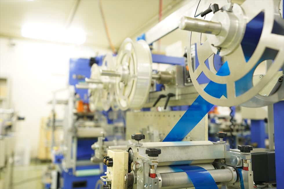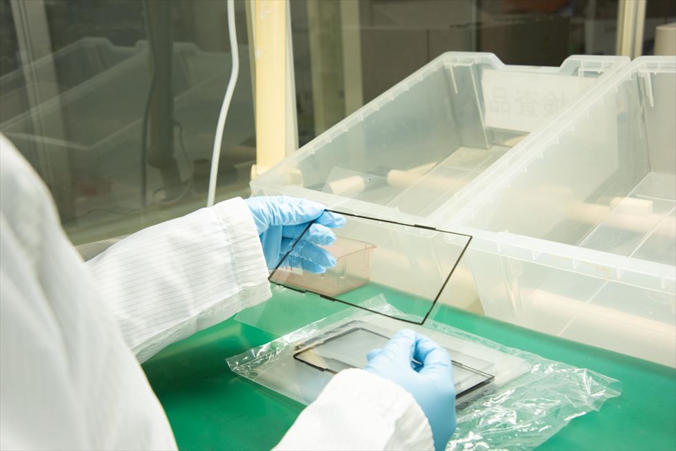 クリーンルームでは、ラミネート加工、プレス加工、シートカットなど電子デバイス等に使用される精密フィルム加工を行っています。